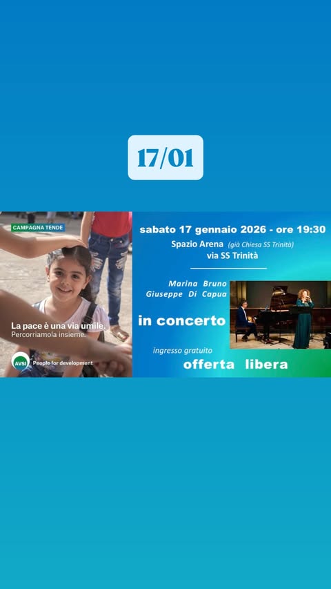 Pubblicato in - EVENTI - il 14 Gennaio 2026 Marina Bruno & Giuseppe Di Capua in concerto Sabato 17 gennaio 2026 Spazio Arena via Trinità, 93 Avellino (AV) Marina Bruno & Giuseppe Di Capua in concerto Condividi sui social